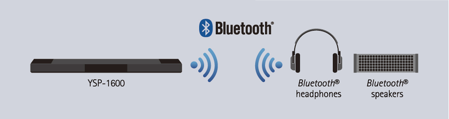 The YSP-1600 is equipped with the latest Bluetooth technology, making wireless operation more convenient than ever. You can stream music from the YSP-1600 to Bluetooth headphones for private listening or to Bluetooth speakers.