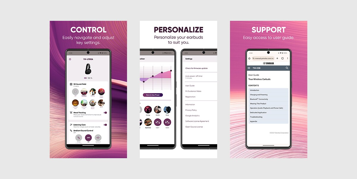 Easily control and personalize your Yamaha earbuds with the Headphone Control App.