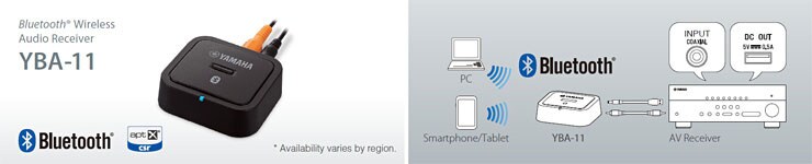 This AV receiver provide a DC-out connection for the YBA-11 Bluetooth Wireless Adapter (optional accessory). You'll be able to stream music wirelessly from a Bluetooth-capable smartphone, tablet or PC, without a WiFi environment.