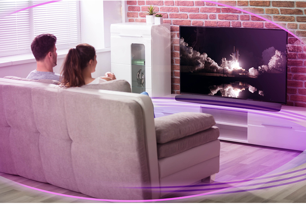 Minimalistic but far from basic. Built-in Alexa voice control, DTS® Virtual:X™ virtual 3D surround sound, built-in subwoofers, and a slim profile suited for cabinet or wall placement.