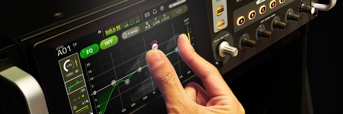 In developing the TF series Yamaha engineers built from their existing base of acclaimed high-end mixer interfaces, adding intuitive control in an interface optimized for the type of touch panel control that has become a familiar feature in a wide range of applications. Allowing most operations to be carried out via the touch panel alone, the innovative TF series interface will quickly become second nature to a broad spectrum of users. Whether you have experience with Yamaha digital consoles, work with other digital consoles, operate analog consoles, or have never operated a mixer before, TF consoles will lead you to the desired results quickly and effortlessly through a smooth, efficient workflow. The availability of physical controls surrounding the touch panel further enhances control versatility and precision.