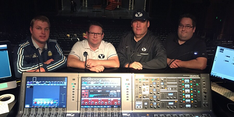 BYU AV Production Staff: L-R Taylor Glad, Aaron Kopp, Randy Corbett, Eric Kopp