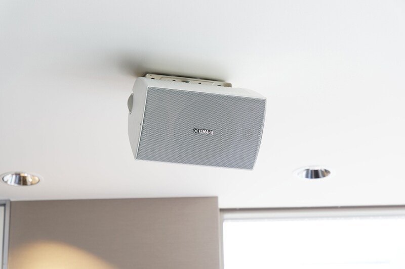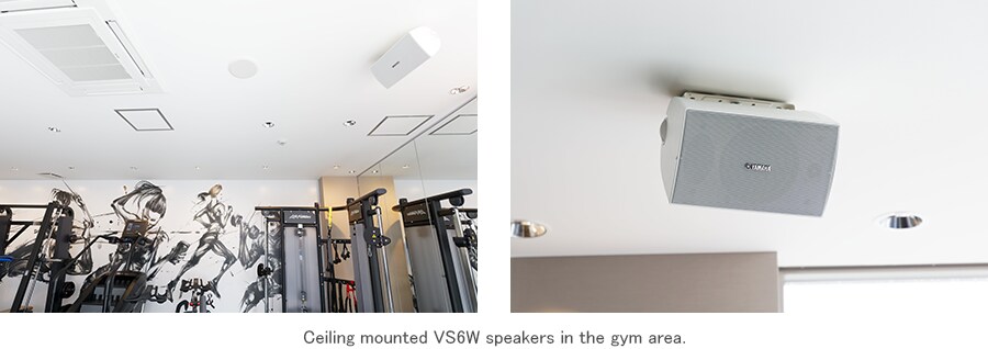 A number of the Fit&Go launch team members love music and sound, and are quite knowledgeable in that area. They wanted to deliver music with higher sound quality than is normal in retail stores and fitness clubs, and carefully auditioned a range of equipment before making a final decision. We chose surface-mount speakers not only for their sound, but also because they subtly imply that we are serious about our audio. Yamaha speakers have a refined design that doesn’t stand out too much. We also liked that fact that we had a choice of white or black colors. The gym area is white, while the locker rooms are a darker color, so to match those colors we chose white VS6 units for the gym and black VXS1ML units for the locker rooms.