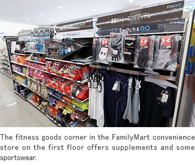 Of course. Some people have come to check out the fitness club simply because it is associated with a convenience store. That is one of the reasons we have installed large windows that allow the interior of the fitness club to be seen from outside, and have designed the entrance for an “open feel” and easy access. We also have a corner for fitness related goods in the store, where members can pick up supplements or sportswear items and head straight up to the fitness club on the second floor. People tend to gather at a convenience store, and we hope that the connection between the store and fitness club will make it easier for local residents to add some exercise to their day, thereby improving their fitness and health.