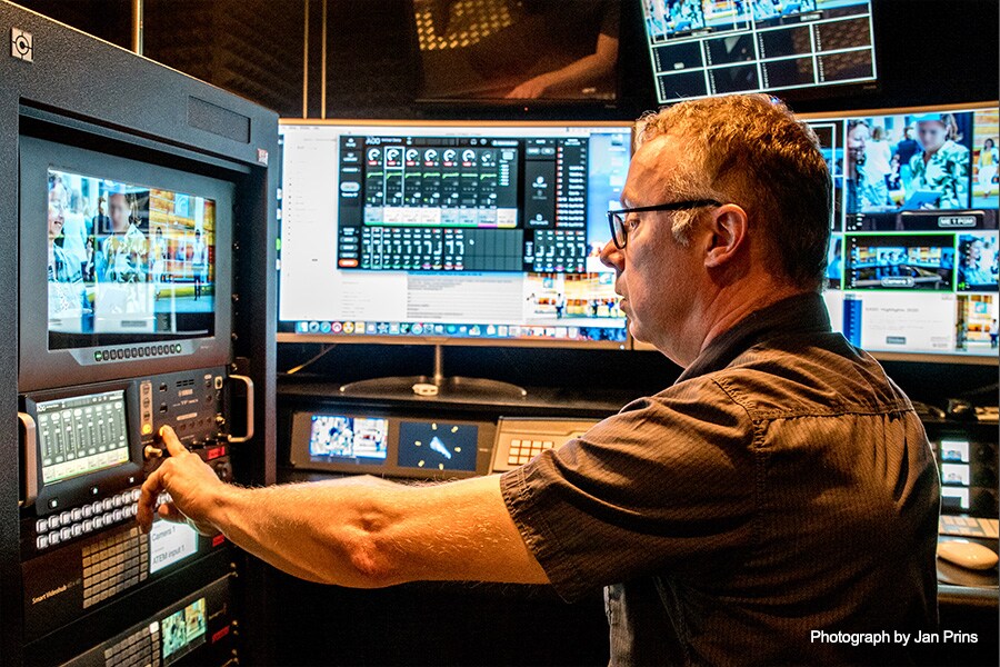 Studiohuyz is a striking property, designed by architect E.G. Middag and built in 1934. Its modernist architecture is an appropriate home for owner Erik Huizinga’s studio, which needs to keep pace with the latest advances in online broadcast technology. Having worked in the broadcast industry since 1986 as an independent producer, director and format designer, Huizinga became one of the first Dutch online producers in 2004. His business, RTV & Film Produkties, produces online seminars for many different customers, mainly related to in-service training in the medical, aviation and economics industries.