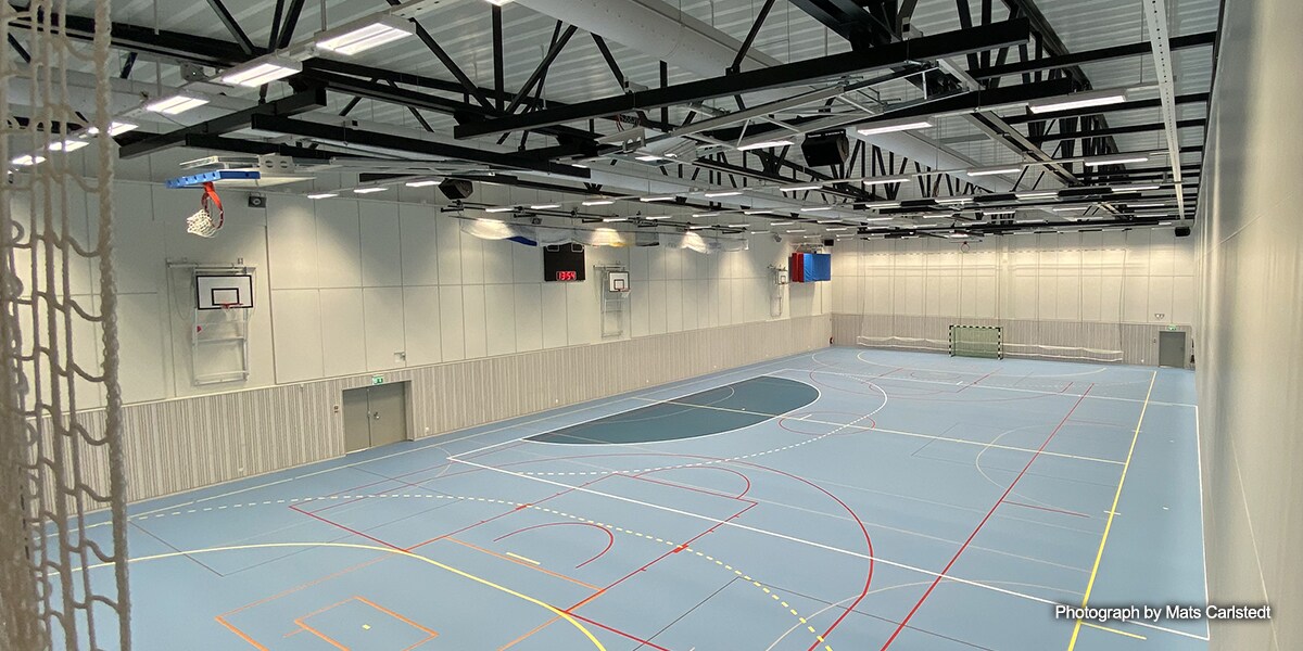 The new Lågehallarna was designed and built by Swedish construction firm NCC in partnership with the municipality of Hörby. Mats Carlstedt of Sweden Audio Consulting AB was contracted to design and install the audio system in the main handball arena.
