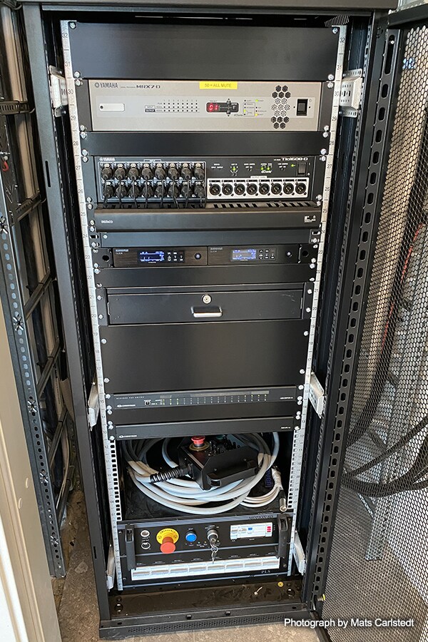 To deliver the required flexibility, Mats specified an MRX7-D matrix processor. The analogue outputs were used for a four channel induction loop for the hearing impaired, while he added a TIO 1608-D I/O rack to extend the number of inputs. “It’s an I/O unit that works well and is one of the best value in terms of how many ins and outs you get,” he says.