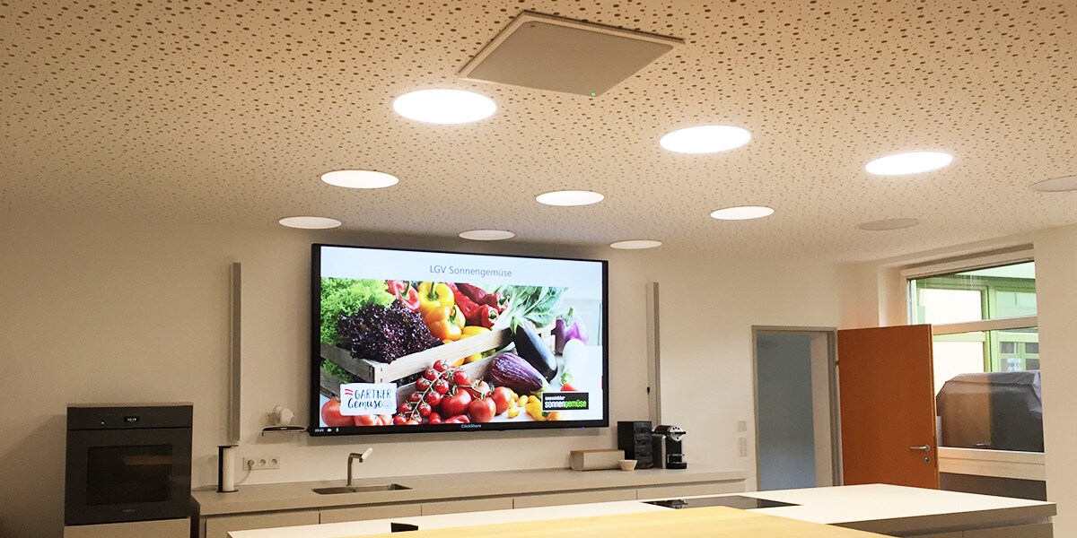 Those responsible at LGV Sonnengemüse searched for suitable solutions together with the audio experts from the Klangfarbe system house and decided to install a ceiling microphone. The choice then fell on the powerful, professional all-in-one ADECIA ceiling microphone solution from Yamaha.