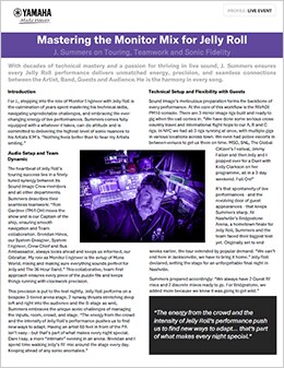 Summers credits Yamaha for providing the reliability he needs to perform at the highest-level night after night. “Yamaha gives me the confidence to ensure my artists are happy on stage, which translates to a great performance for them and the audience.”