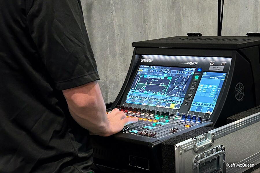 The complexity of the event demanded a flexible, rock - solid system. Yamaha’s Dante - enabled infrastructure formed the backbone, with 11 consoles deployed across the venue, including (2) DM7-EX, (4) DM7-C and (5) DM3 systems, each acted as a local mix point and I/O hub.