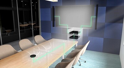 When constant noise like a projector fan or air conditioner system enters the communication space, Yamaha's Noise Reduction technology removes these components to clearly convey the presenter's audio to the far-end.