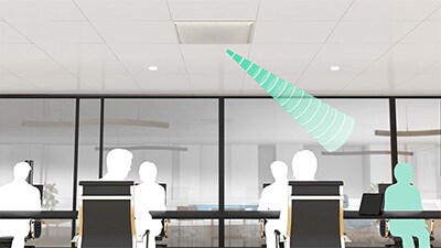 In medium-sized conference rooms accommodating about 10 to 20 people, coverage can be expanded by connecting two Ceiling Array Microphones.