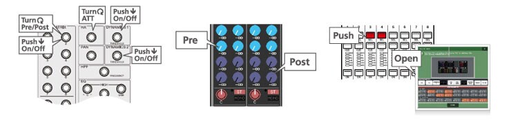 - New alternate functions for the Selected Channel added. The new functions can be assigned to User Defined Keys for even greater efficiency.- MIX Pre/Post status now shown in the Overview display. Color coding makes the MIX status clear: "Pre" when the knob marking is white, and "Post" when black.- Simultaneously press [SEL] keys to show the Channel Link window. This shortcut was provided on previous Yamaha digital mixers, so it will be familiar to operators who have experience with Yamaha consoles.- The PEQ "Q" parameter value now goes up to 16. Compared to the previous limit of 10, this allows even more detailed response shaping using the parametric EQ.- Instant switch between shelving/peaking by pushing and rotating the PEQ "Q" knob. Faster, more intuitive operation than the previous method of switching between shelving and peaking response via the display.- SUBNET MASK range extended to 255.0.0.0. This allows Studio Manager connection from a separate network.