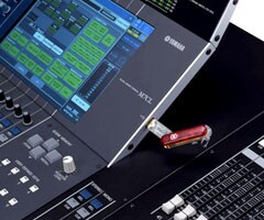 Standard USB memory sticks can be plugged into the M7CL USB port for convenient storage and recall of a range of data: scenes, patches, user libraries, channel names, preferences... essentially all system data. In addition to providing a secure backup, this makes it easy to transfer data between the console and the M7CL Editor application running on your personal computer, or directly between M7CL consoles.