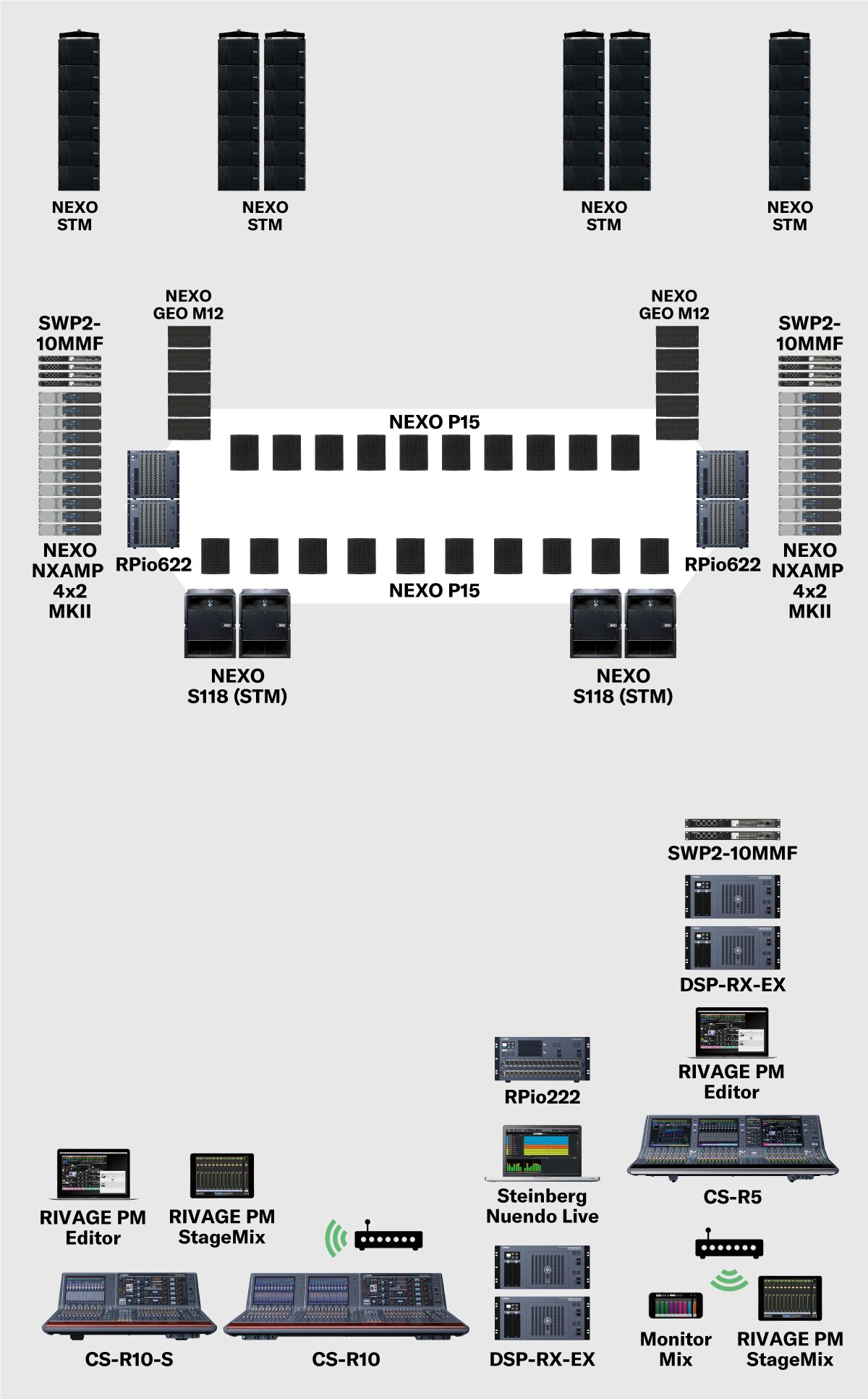 • Due to its compact size, flexible operation, and superior sound quality, Yamaha’s flagship RIVAGE PM mixing console has become a live sound reinforcement industry standard, winning international acclaim from some of the most popular artists touring today. NEXO’s STM line array speaker systems act as the perfect complement, flexibly supporting the RIVAGE PM as a scalable, powerful solution that can be adapted to meet the demands of various live venues and deliver a memorable sonic experience for everyone in attendance.