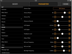 Visually edit Volume Balance, PAN, and Effect Send for each pad.