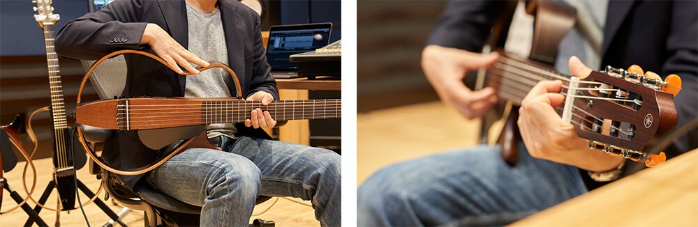 Yes. Without a body, the resonance and reverberation that normally emanate from the guitar into the surrounding air is lost, as is the live quality of the sound. We wanted to represent the deep reverberation of a guitar body while retaining these silent characteristics, which led us to create the unique Yamaha SRT (Studio Response Technology) Powered pickup system.