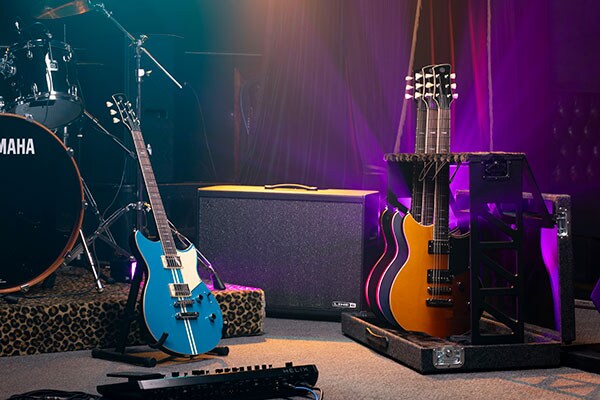 Yamaha's newest series featuring unique tailpieces and pickup covers, a copper pickguard, and a variety of steel wool finishes, ultimately fusing the design philosophy of custom motorbikes with Japanese technological expertise and Yamaha’s renowned craftsmanship.