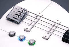 The 3-control system includes front volume, rear volume, and master tone controls. Volume levels for both front and rear pickups are indicated by LED brightness. Looks are simply cool onstage.