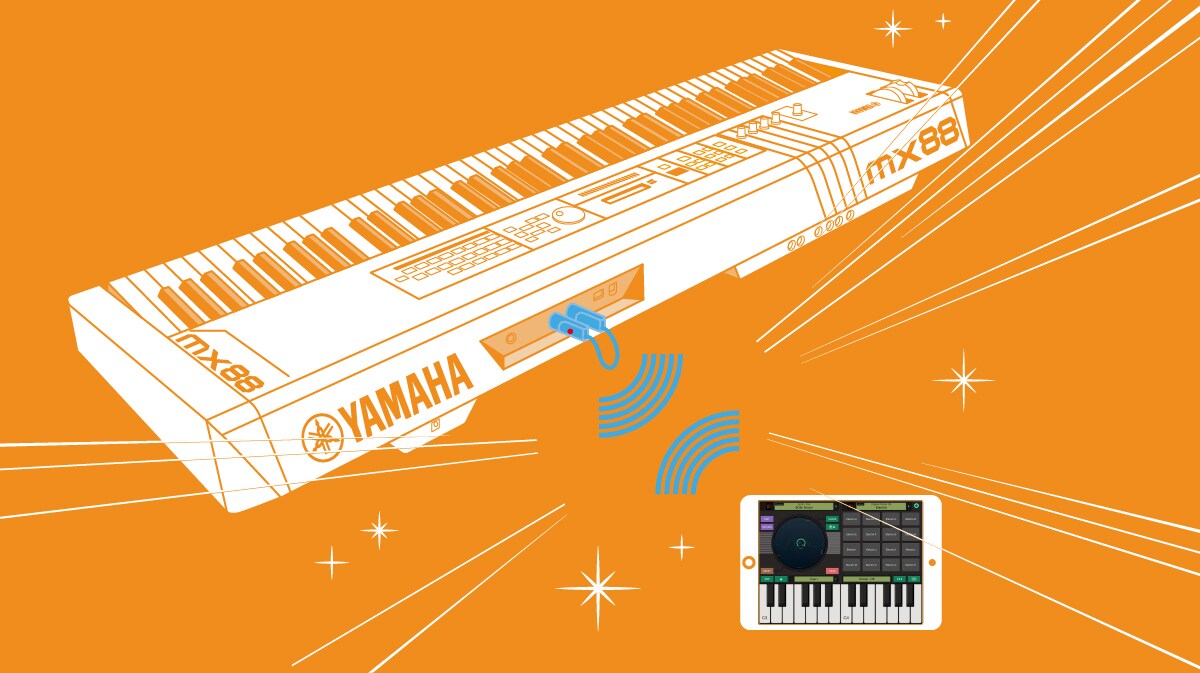 - With Yamaha MD-BT01 wireless Bluetooth MIDI adapter and stereo 3.5mm cable.