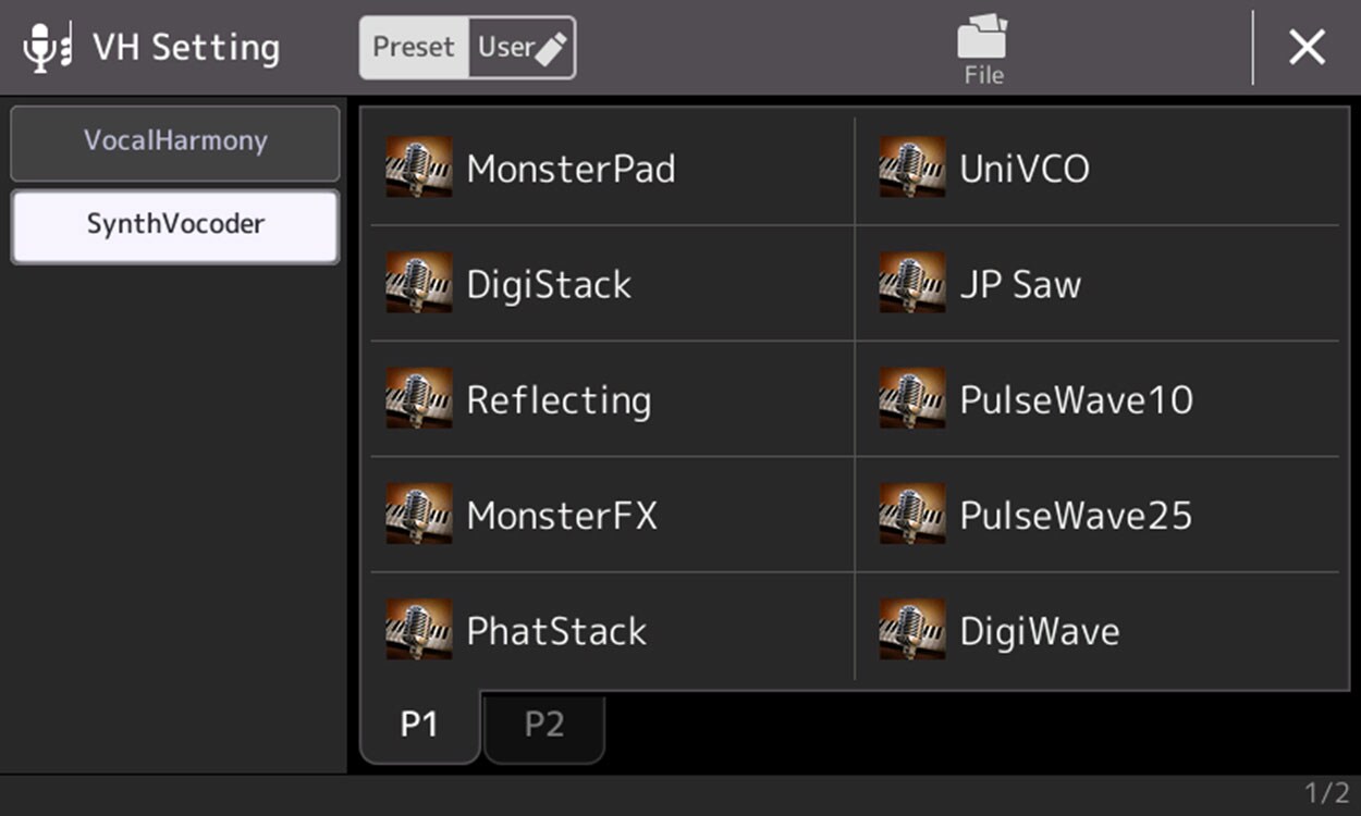 You can automatically apply various Vocal Harmony effects to your voice as you sing, or you can use the Synth Vocoder to craft the unique characteristics of your voice onto synthesizer and other sounds.
