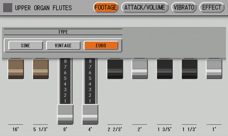This feature makes it possible to create a gorgeous, full organ sound. There are three types to choose from (Sine, Vintage, and Euro), with Vibrato, Rotary Speaker, and other classic organ effects that can also be adjusted by the player.