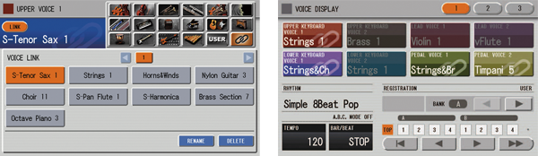 A wide range of combinations can be called up instantly using a single button, with five Registration Banks each consisting of 16 memories available, enabling the user to store a maximum of 80 (16 x 5) original Registrations.
