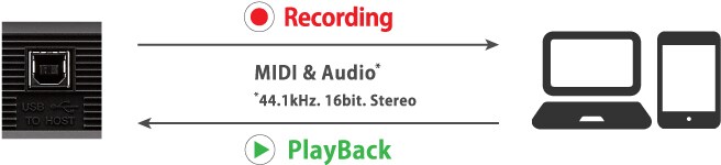The USB TO HOST terminal allows you to connect to a computer or portable device and record high-quality audio without the need for an additional interface. A variety of creative and educational iOS apps are available from the App Store*