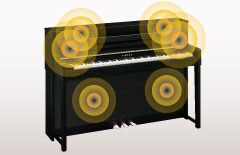 Similar to an acoustic piano, the Clavinova is calibrated carefully, with speaker positioning and body materials checked to ensure that the entire instrument resonates optimally. For a sound image that is very close to the grand piano, these instruments feature Tone Escapement in several locations throughout the body that allow the sound from the speakers to be projected to the listener's ears without being trapped inside the instrument.