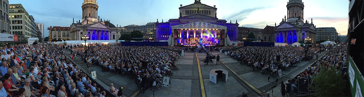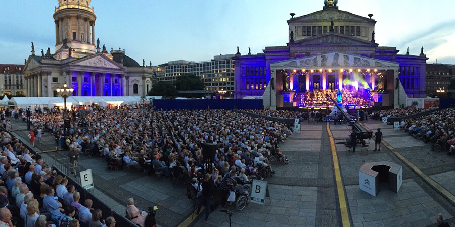 The Classic Open Air Festival (CoA) concerts take place in the city’s Gendarmenmarkt, in front of the Konzerthaus and between the historic Deutscher Dom und Französischer Dom buildings. This provides an ‘amphitheatre’ feel for the five spectacular nights of music, lighting and fireworks.
