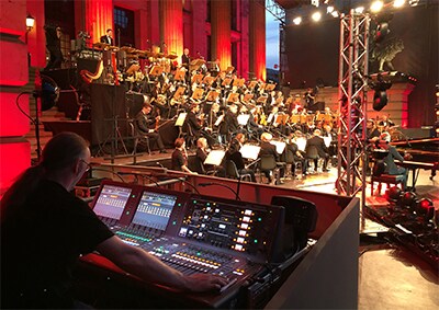 The first night’s gala was televised by broadcaster RBB, a process made easier by the use of two Yamaha RMio64-D Dante-MADI converters. “It made my day to be able to simply transmit all microphone signals in parallel to the RBB OB Van, with no analogue split needed. Being able to combine the console easily with multitrack recordings for virtual soundchecking was another really important feature for staging five complex performances on consecutive nights,” says Manfred.