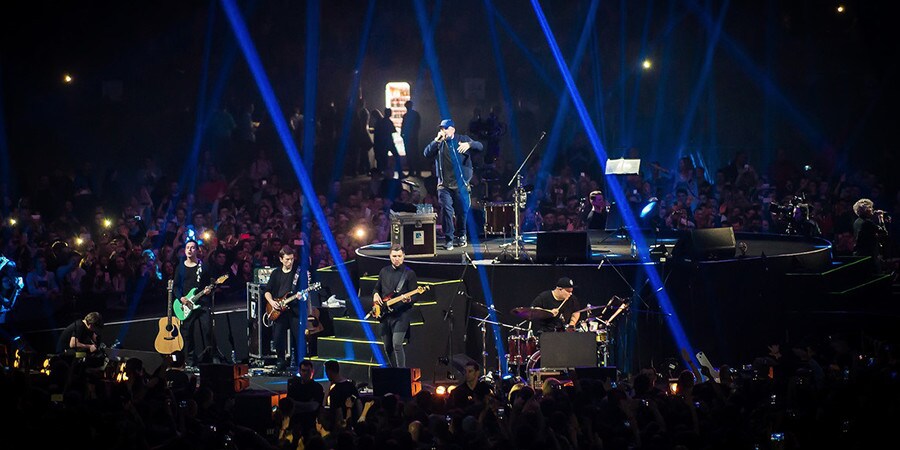 Recently top Russian rapper Баста performed in front of a sold-out, 35,000-strong crowd at Moscow’s Olympic Stadium, setting a new record for an in-the-round performance by a Russian artist. Front of House sound engineer Ruslan Dmitriev naturally wanted a top class console for such a prestigious show, so he chose the Yamaha RIVAGE PM10.