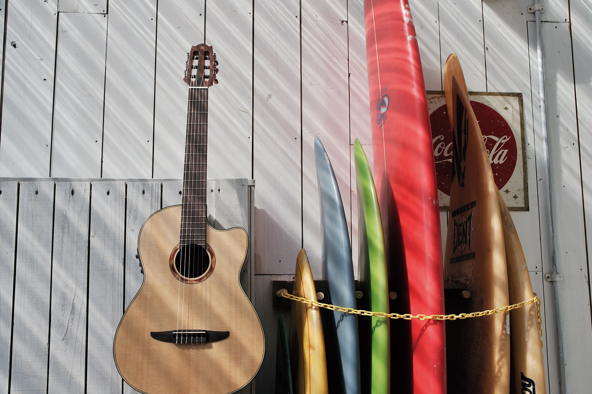 NTX500 is a modern designed electric nylon strings guitar with a thin body depth and a slim-profile neck for easy playability which is perfect for playing Latin, Jazz, Pop or Rock music. Yamaha exclusive under-saddle pickup provides solid and cut-through plugged-in sound in a band.