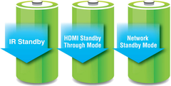Yamaha makes its receivers eco-friendly with a low standby power consumption of 0.3W in IR Standby mode (5.0W in HDMI Standby Through mode, 2.2W in Network Standby mode).