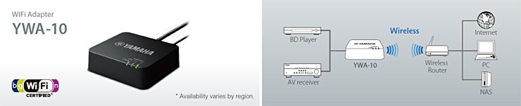 This AV receiver provide a DC-out connection for the YWA-10 WiFi Adapter (optional accessory). This lets you stream music wirelessly via a router from network components such as a PC or NAS.