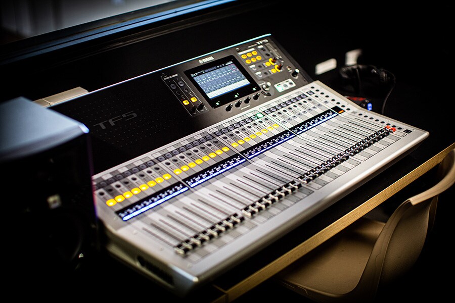 Audio has been provided in two modes. Basic is controlled from a side-of-stage touch panel and a main bio box location, giving the user control of three radio mics, video and lighting. Advanced mode controls the Yamaha TF5 console, patch points throughout the venue and four radio mics.