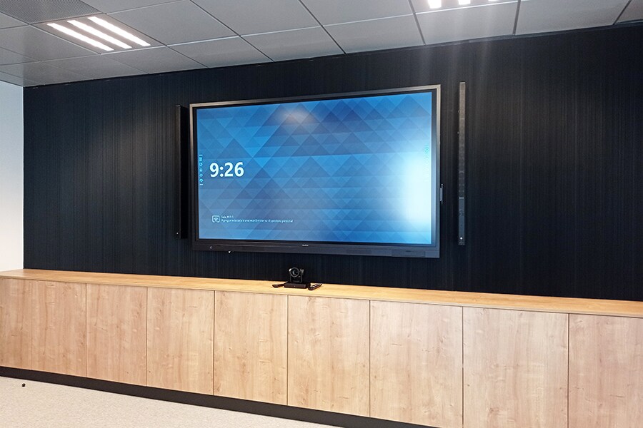 From the outset, OneVite selected the ADECIA conference ceiling solution, a pioneering and exclusive solution from Yamaha which integrates an RM-CG ceiling microphone, a pair of VXL-16P line-array loudspeakers located next to a large 82" monitor, and a signal and conference management processor RM-CR, being an all-in-one solution.
