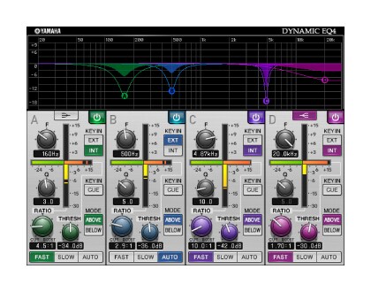 Dynamic EQ4 เป็นอีควอไลเซอร์แบบไดนามิก 2 แบนด์ที่ได้รับการเพิ่มให้มาใช้ 4 แบนด์ ย่านความถี่พิเศษช่วยให้สามารถสร้างเสียงที่มีช่วงกว้างขึ้น และฟังก์ชั่นการเลือกแหล่งกำเนิดเสียงแบบ KEY IN ช่วยให้สามารถใช้งานในรูปแบบใหม่ๆ ได้อย่างหลากหลาย ตัวอย่างเช่น หากนำ Dynamic EQ ไปใช้กับกีตาร์ และเลือกเสียงจากไมโครโฟนให้เป็นแหล่งกำเนิดเสียงแบบ KEY IN เสียงกลางของกีตาร์จะปรับให้ต่ำลงเล็กน้อยโดยอัตโนมัติเมื่อใดก็ตามที่มีเสียงร้องเข้ามา เพื่อให้เสียงร้องมีพื้นที่มากขึ้นและโดดเด่นมากขึ้น