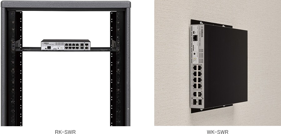 อุปกรณ์เสริมติดแร็ก “RK-SWR” ที่จำหน่ายแยกกันสามารถใช้ติดตั้งอุปกรณ์ในชั้นแร็กขนาด 19 นิ้ว และคุณสามารถใช้อุปกรณ์เสริมติดผนัง "WK-SWR" เพื่อติดตั้งเครื่องบนผนัง (ห้ามติดตั้งโดยพอร์ต LAN หันขึ้นหรือลง) หรือเพดานที่มีความสูงไม่เกิน 2 ม. ขยายทางเลือกสถานที่ติดตั้งของคุณเพิ่มขึ้นอีก