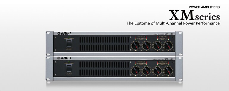 The XM series multi-channel power amplifiers are ideal for theater, hall, and conference room installations. The lineup includes 80W x 4 and 180W x 4 models, meeting the needs of a wide variety of installed systems. The XM amplifiers are a compact 2U size and surprisingly lightweight, making them easy to handle and install. Switching power supplies deliver high output power while minimizing the unit's physical size. The XM series has monitor/remote jacks that allow external devices to be connected for status monitoring or control from a remote location.