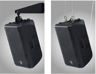 DBR loudspeakers come equipped with M8 rigging threads, allowing for rigged applications with optional speaker brackets or standardized eye-bolts.*Speaker brackets and eye-bolts are not included.