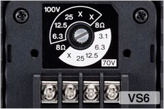 Tap selector switch is located on the rear panel to select the power tap of 70V/100V line distributed system or 8Ω sound system. The setting can be easily adjusted by rotating the tap selector with a screwdriver. The terminals and tap selector can be protected using the supplied cover.