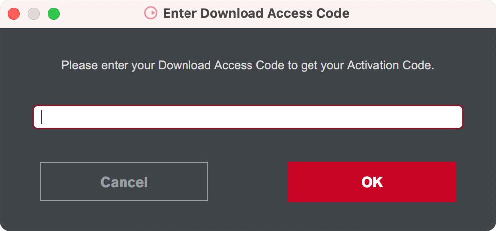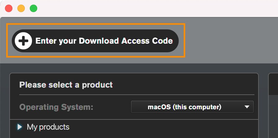 ป้อนรหัส download access ของคุณจากปุ่มด้านซ้ายบนใน Steinberg Download Assistant