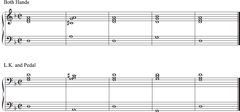 - โน้ต Bracketed มีไว้สำหรับ L.K. และ Pedal