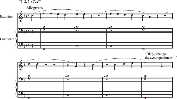 2. ผู้คุมสอบจะเล่นในครึ่งแรก และจะส่งสัญญาณให้ผู้ทดสอบเล่นเมโลดี้จากการฟัง ในขณะที่ผู้คุมสอบจะเล่น Accom ไปด้วย