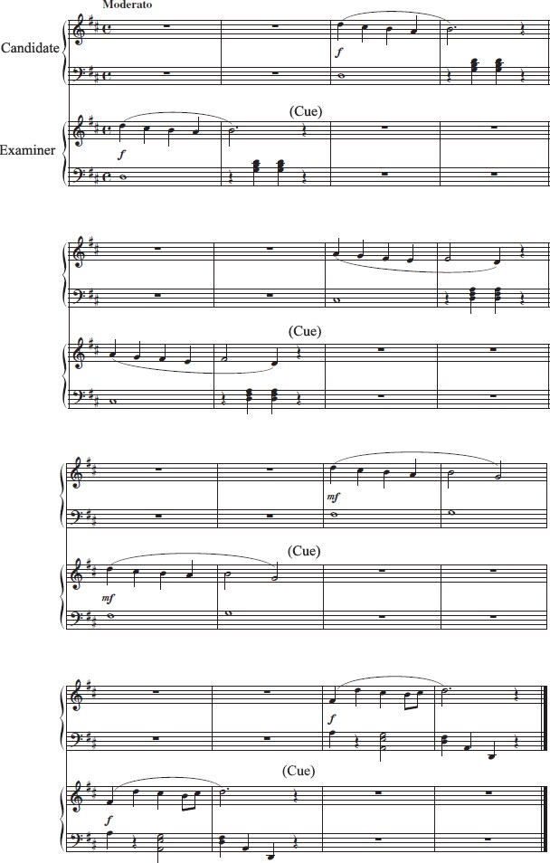 2. จากนั้นผู้ทดสอบจะเล่นทีละวรรค 2 หรือ 4 บาร์ และผู้ทดสอบจะเล่นวรรคเดียวกันหลังจากที่ผู้คุมสอบให้สัญญาณ