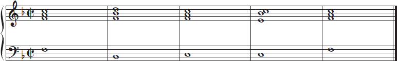 2. ในขณะที่ผู้คุมสอบเล่นเมโลดี้เป็นครั้งที่ 2 ผู้เข้าสอบจะต้องเล่นตามด้วยคอร์ดที่เหมาะสมที่สุดโดยใช้ทั้ง 2 มือ และยึดตามโน้ตเสียงเบสที่ได้รับ