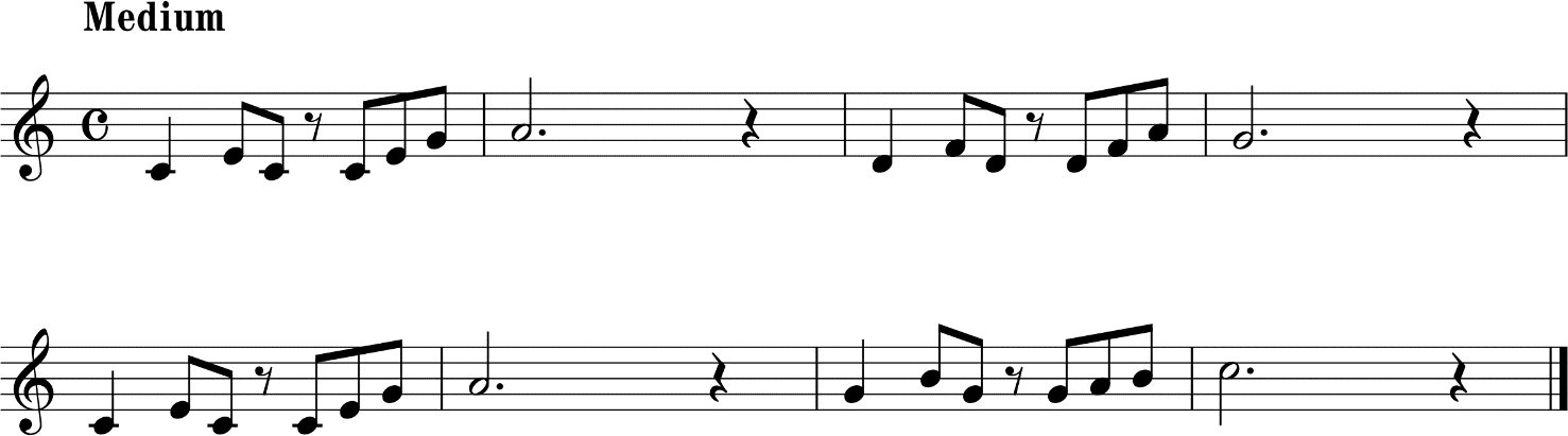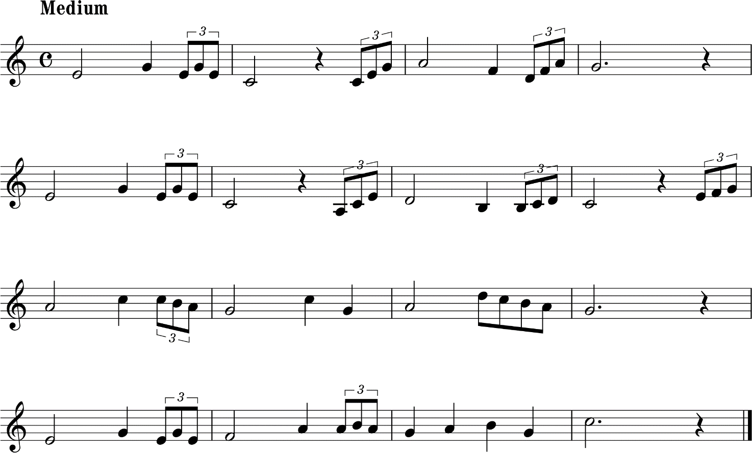3. ผู้คุมสอบจะเล่นคอร์ดโทนิคและโน้ตตัวแรกของเมโลดี้โดยใช้เปียโน จากนั้น ผู้ทดสอบจะเริ่มต้นขับร้องหลังจากผู้คุมสอบให้สัญญาณ