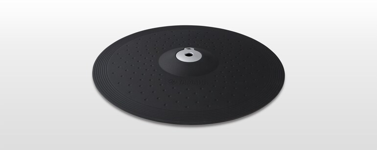 The cymbal pad consists of three separate zones, an edge zone, a bow zone, and a cup zone. This enables the pad to recreate the unique sounds that are produced when you hit different parts of a cymbal. The pad responds accurately to subtle differences in dynamics during performance and can faithfully reproduce delicate cymbal playing, powerful hits, and choking.