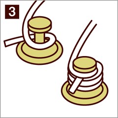 3. Strings should be wound around the pegs two to three times. The first wind should be done above the inserted string, while the second wind on should be done below the string, so that the inserted string is "pinched" on either side. This will allow you to wind the string tightly without any slack.